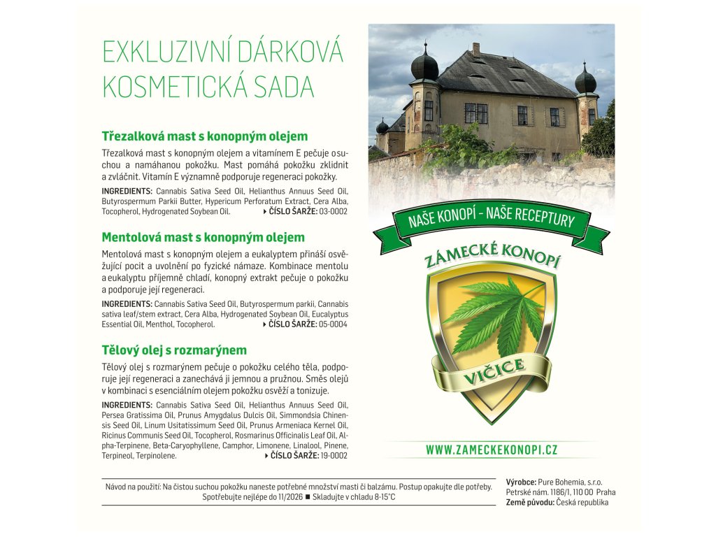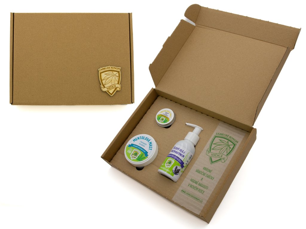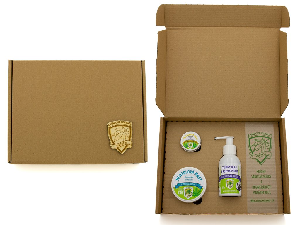 Ideální vánoční dárek - 2 druhy konopných mastí a tělový olej s rozmarýnem.
