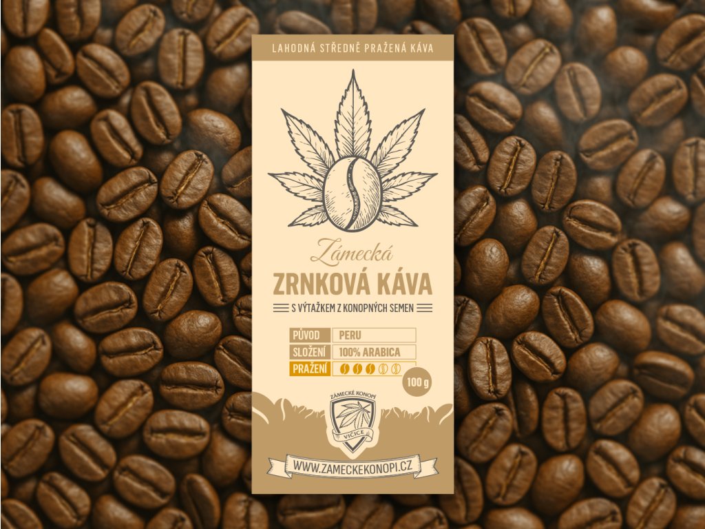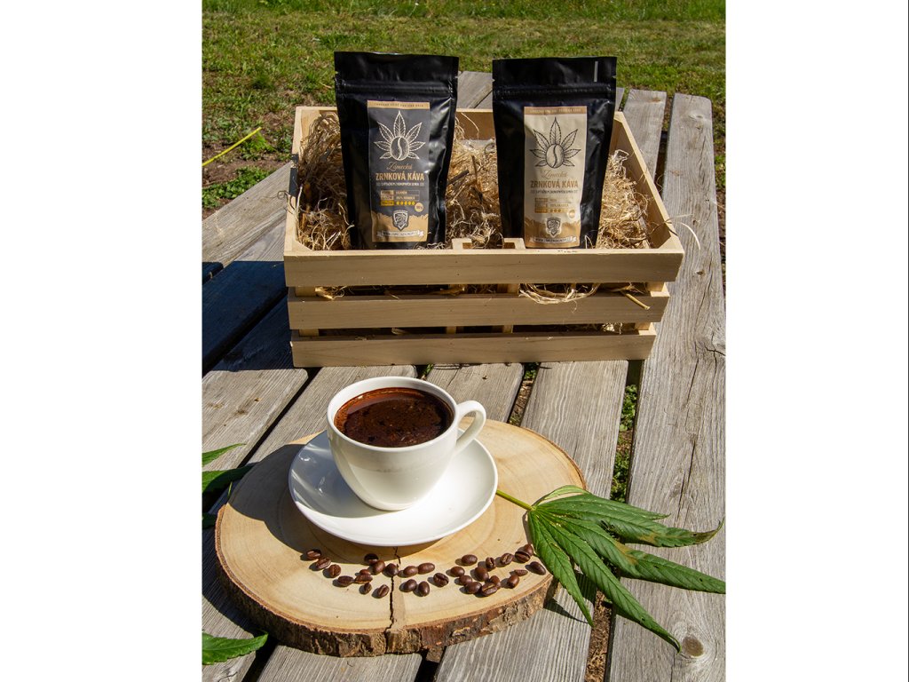 - Ochucení: výtažek z konopných semínek přidaný během pražení